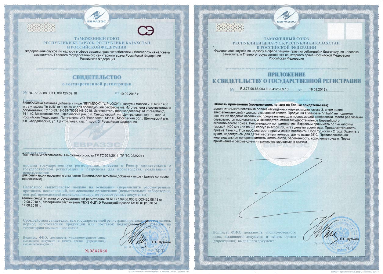 "LIPILOCK®" ®” has the registration of the Russian Federal Service for Surveillance on Consumer Rights Protection and Human Wellbeing (Rospotrebnadzor). Certificate of State Registration No. RU.77.99.88.003.Е.004125.09.18 dated 19.09.2018.