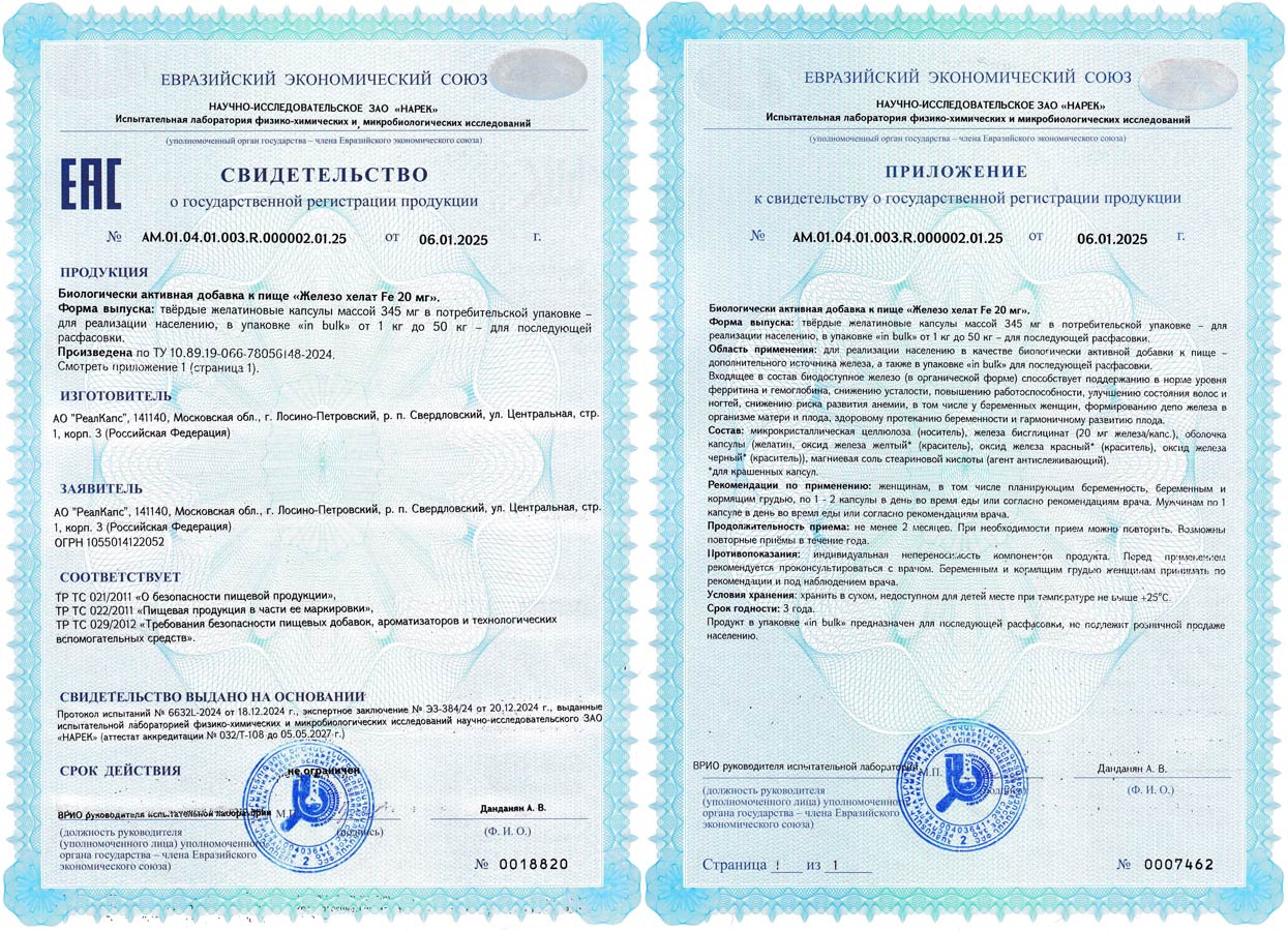 Certificate of state registration No. AM.01.06.01.003.R.000019.02.20 dated 26.02.2020, TU 10.89.19-048-78056148-2019.